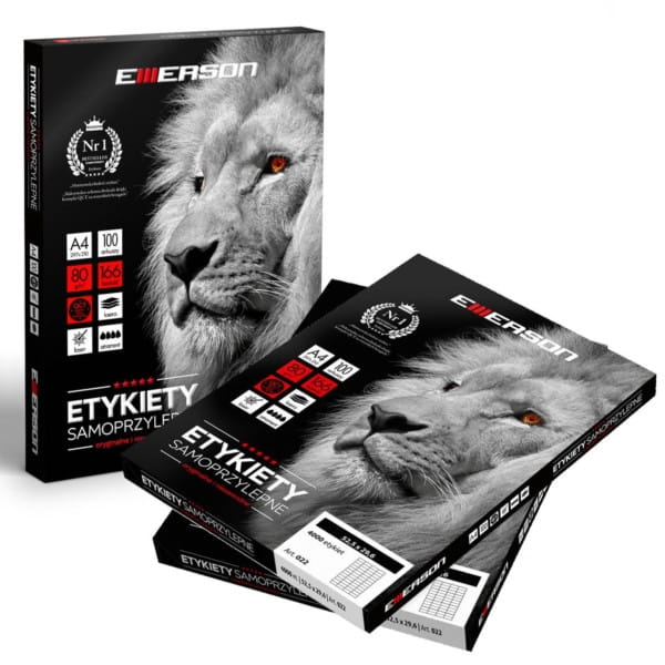 Etykiety znanej i cenionej marki EMERSON, wykonane z najwyższej jakości materiałów, trawłe i odporne, idealne rozwiązanie do biura jak i domu