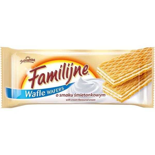 Kultowe ciastka Familijne delikatne, kruchy wafelek przkładany delikatnym kremem, tworzą oryginalny niepowtarzalny smak.