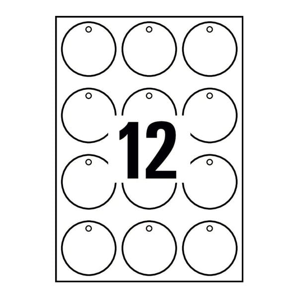 Etykiety/zawieszki kartonowe 60mm okrągłe białe 220g AVERY ZWECKFORM QUICKCLEAN 10 arkuszy 120 etykiet /T2004-10/