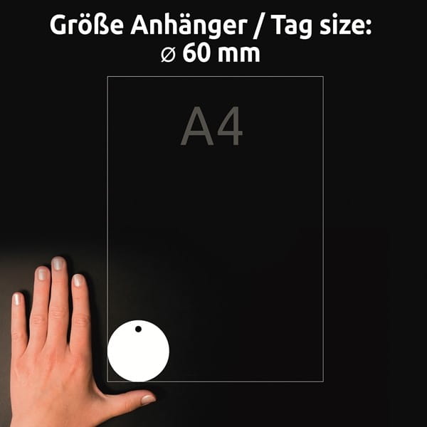 - Wysokiej jakości białe zawieszki kartonowe, w zestawie sznurki do mocowania
