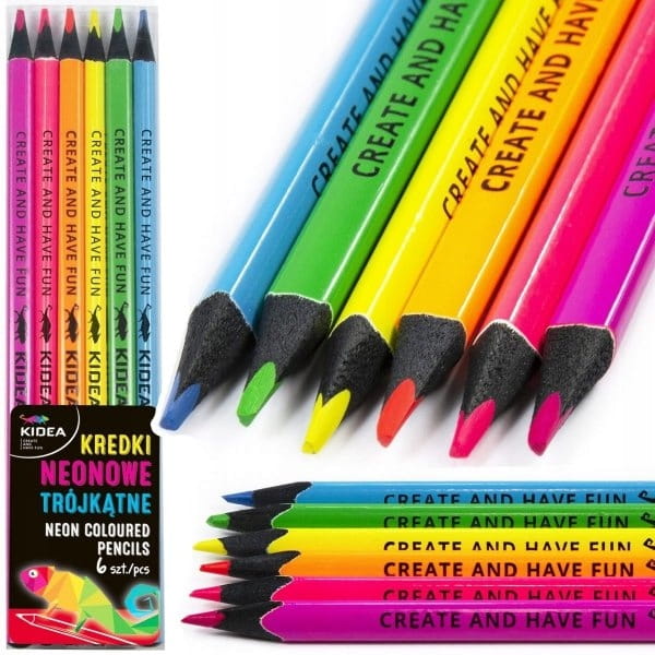 Zestaw 6 kredek o intensywnych, neonowych kolorach.