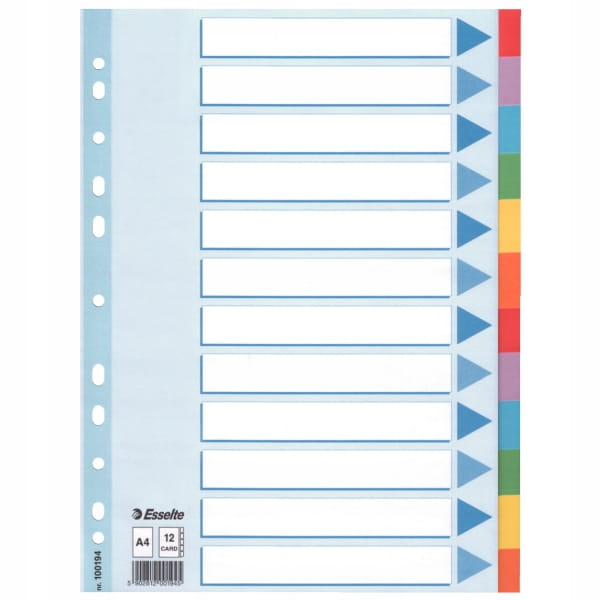 PRZEKŁADKI A4/12 KARTONOWE Z KARTĄ OP KOLOR ESSELTE
