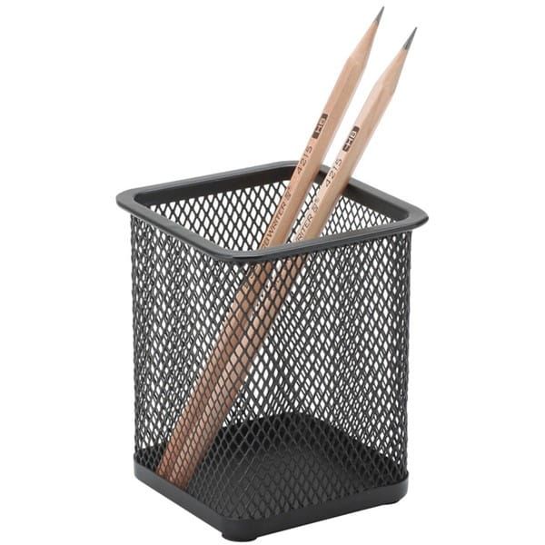 kwadratowy pojemnik na długopisy z metalowej siateczki powlekanej lakierem
