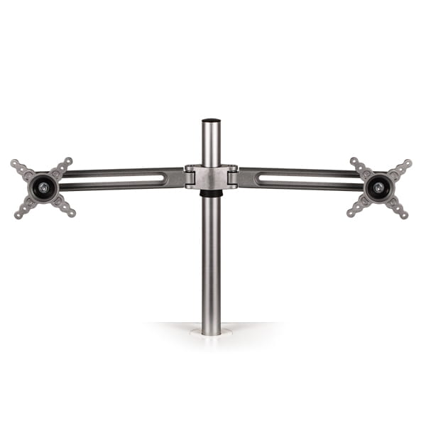 Ramię umożliwia umieszczenie dwóch monitorów na odpowiedniej wysokości Posiada regulację wysokości w zakresie do 40 cm oraz rozstawu Podczas podniesienia / opuszczenia stanowiska Sit-Stand monitory pozostają w tej samej pozycji Każde z ramion utrzymuje monitor do 27” o wadze do 7 kg System montażu VESA