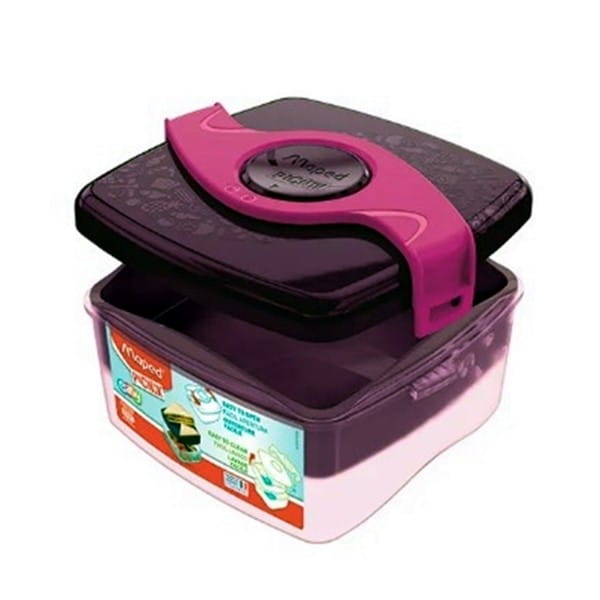Dwukomorowe, stylowe pudełko lunchowe wykonane z tworzywa sztucznego.