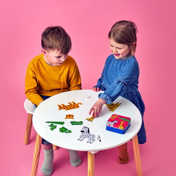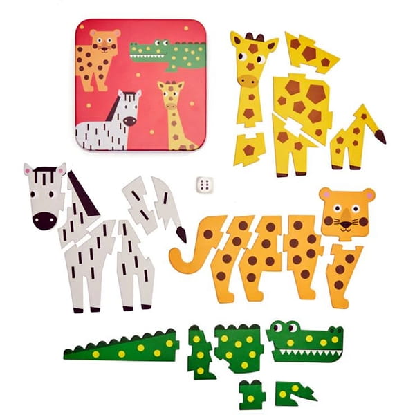 Idealne rozwiązanie w podróży! Rzucaj kostką na zmianę, dopasuj liczbę oczek i zbuduj swoje zwierzę! Kto pierwszy zbuduje zwierzę, wygrywa.
